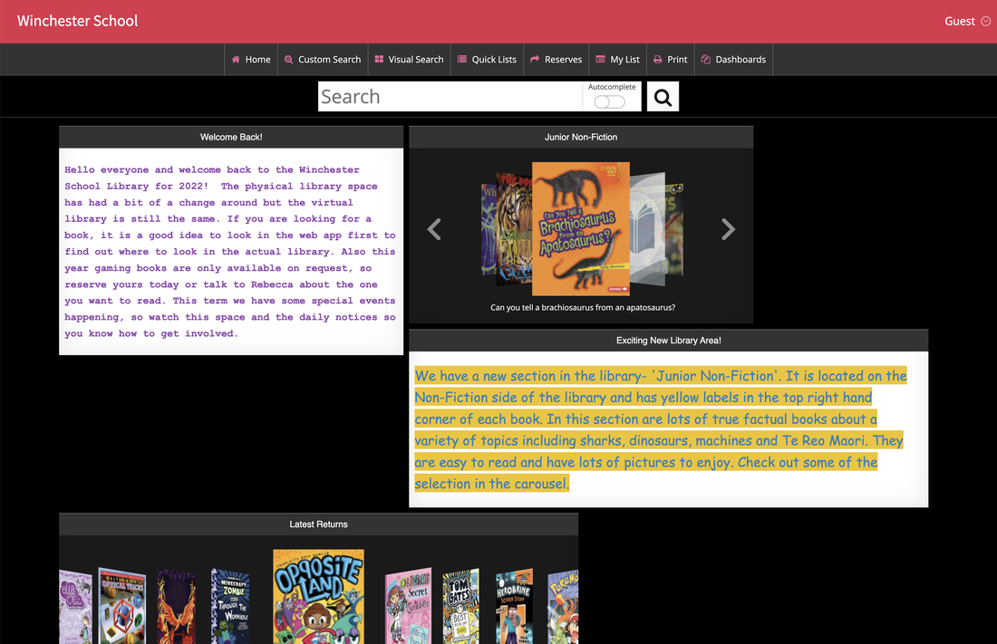 As well as books and magazines the library offers games and other activities to do at lunchtime. The Library catalogue is also available online 24/7 and children can log onto their account to view their current issues and reserve new books. The Library website https://nz.accessit.online/WNPS also keeps up to date with Library themes and events such as language weeks or Author displays.