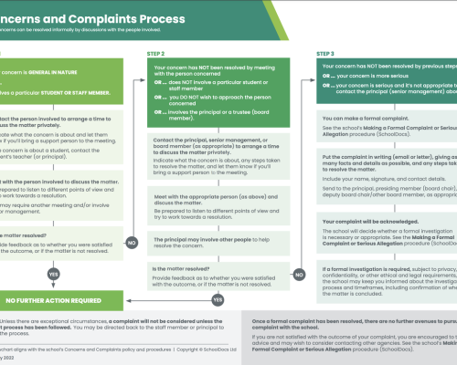 Concerns or complaints should be raised with the school in the first instance. Anyone with a concern or complaint may seek advice or support.